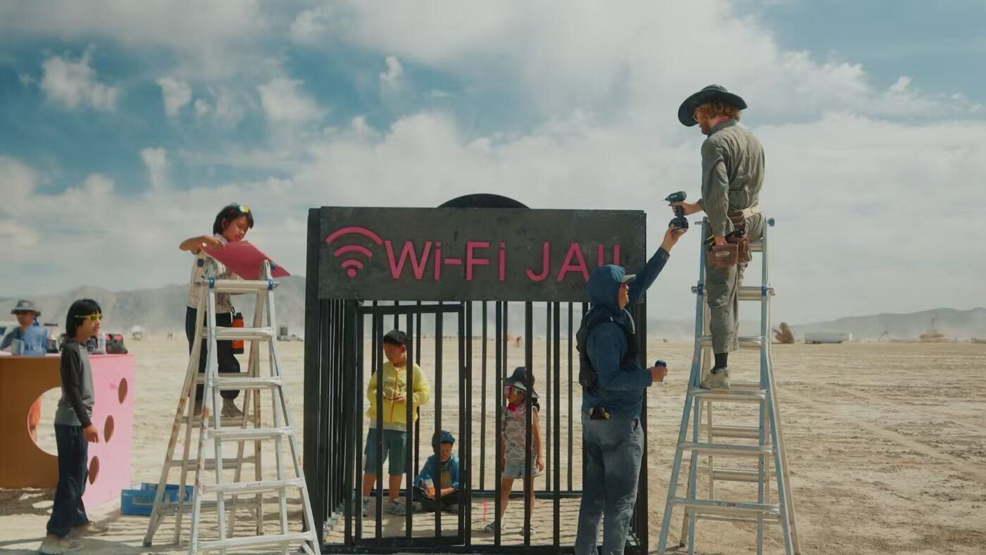 Miao He, born in a small village in rural China, graduated from the China Academy of Art and founded the Mona Art Foundation, a nonprofit supporting marginalized artists and exploring the power of art in mental health. This year, the foundation supported multiple art pieces at Burning Man, including WiFi Jail, an interactive structure designed by children artists aged 6 to 13 to resemble a prison cell. By placing participants inside the jail to access free WiFi, while others watched from outside, the project forced a confrontation with digital dependency. “We give away our attention too easily,” says lead artist Weisen Wang, “No one looks up anymore.” WiFi Jail reminded participants that real freedom might lie not in constant connection, but in choosing when to unplug and reconnect with each other, face-to-face.